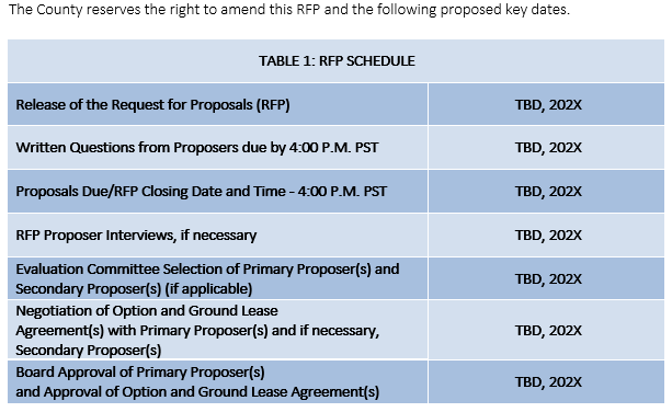 County Executive Office Real Estate, on behalf of the County of Orange (“County”) and Orange County Flood Control District (“District”), is soliciting Proposals, including a Site Feasibility Report, from qualified outdoor advertising companies (“Proposers”) to design, construct, maintain, and operate digital billboards on County-owned and/or District-owned sites. The successful Proposer will be recommended to negotiate the terms of an agreement(s), which may include an Option and Ground Lease Agreement(s). The Primary or Secondary Proposer (if applicable) and negotiated agreement(s) will then be recommended to the County Board of Supervisors for approval. Property owned by the County or District in Orange County, Riverside County and San Bernardino County may be available for billboard development. Proposers must identify and select available land that would be viable billboard sites.